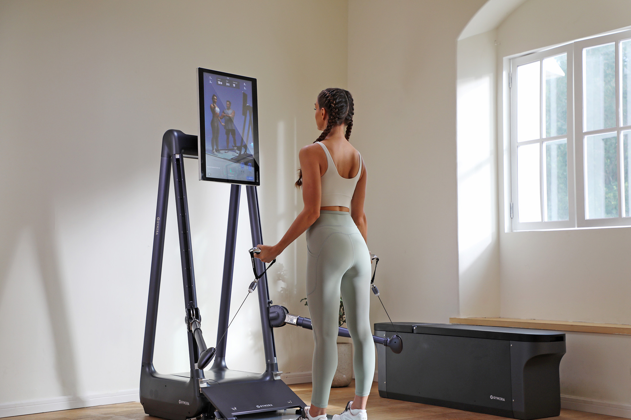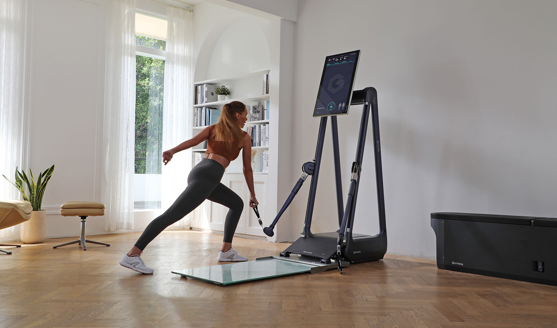 Gymera to serce inteligentnego domu. Dzięki Wi-Fi i Bluetooth błyskawicznie połączysz się ze swoimi słuchawkami, zegarkiem i telefonem. Twoje postępy są automatycznie zapisywane w dedykowanej aplikacji, a system AI w czasie rzeczywistym koryguje Twoją technikę, dbając o to, by każda sesja była w 100% efektywna.